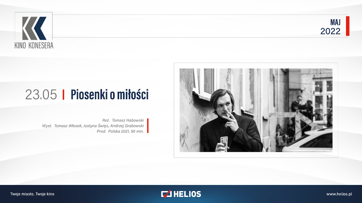 O cudowny nastrój starszych widzów zadba Kino Konesera, w którym 23 maja, o godzinie 18:00 zawita polska produkcja „Piosenki o miłości”. Przepiękna muzyka, rewelacyjna gra aktorska, kadry zasługujące na Oscara – film, o którym po prostu nie da się zapomnieć. Obraz okazał się największym przebojem ostatniego festiwalu w Gdyni. Debiut Tomasza Habowskiego to mocny, nowy głos polskiego kina.