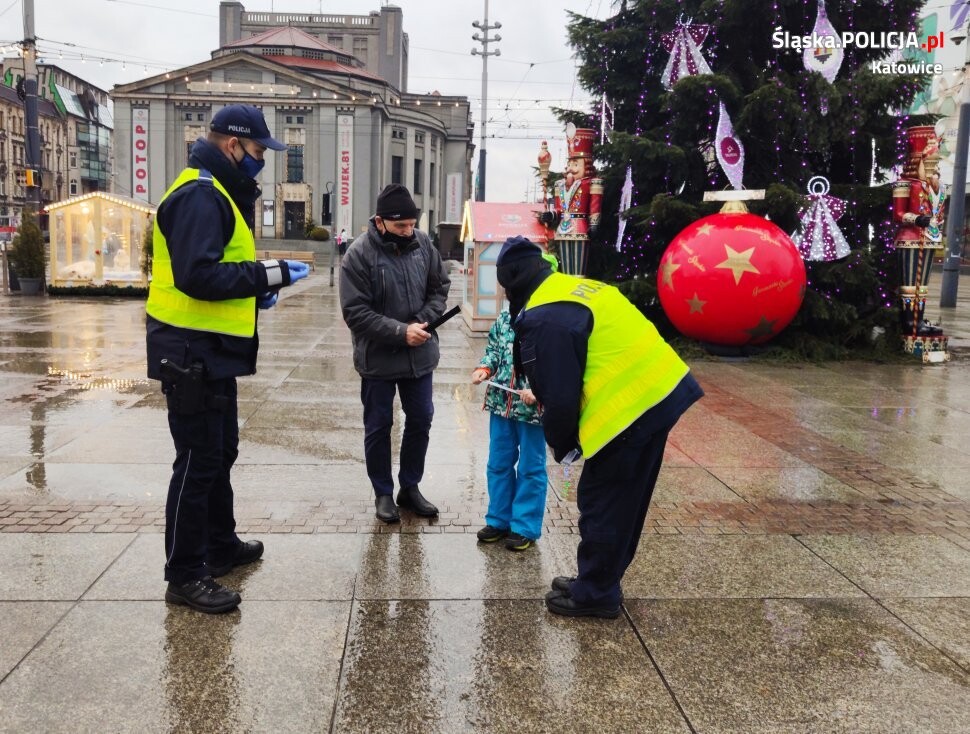 Policjanci z Zespołu Profilaktyki Komendy Miejskiej Policji w Katowicach spotkali się z mieszkańcami Katowic, gdzie informowali o bezpieczeństwie pieszych. Piesi to osoby, które najczęściej doznają najcięższych obrażeń w zdarzeniach drogowych. Akcja została przeprowadzona na katowickim rynku w świątecznej scenerii miasta. Podczas działań udało się dotrzeć także do najmłodszych. Piesi zostali wyposażeni przez policjantów z zakresu profilaktyki w odblaski, które pomogą im być bardziej widocznymi na katowickich drogach.