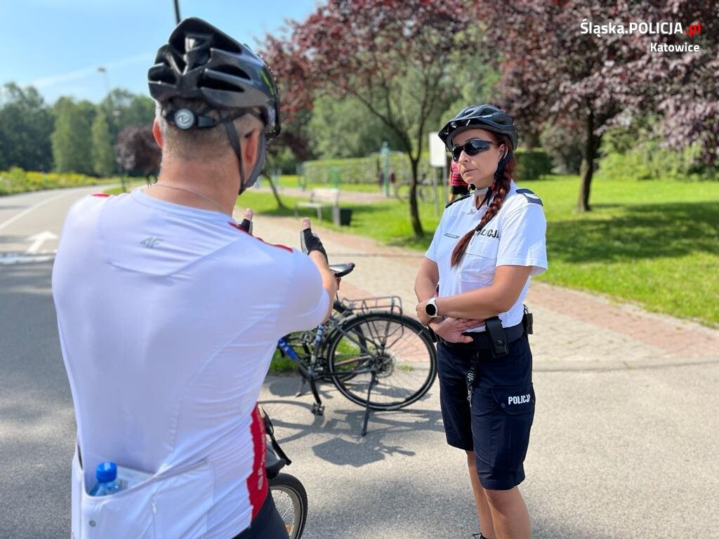 Profilaktyczny patrol rowerowy można było spotkać w Dolinie Trzech Stawów oraz na terenie Osiedla Paderewskiego, gdzie podczas rozmów z mieszkańcami mundurowi przypominali o obowiązujących przepisach, m.in.: