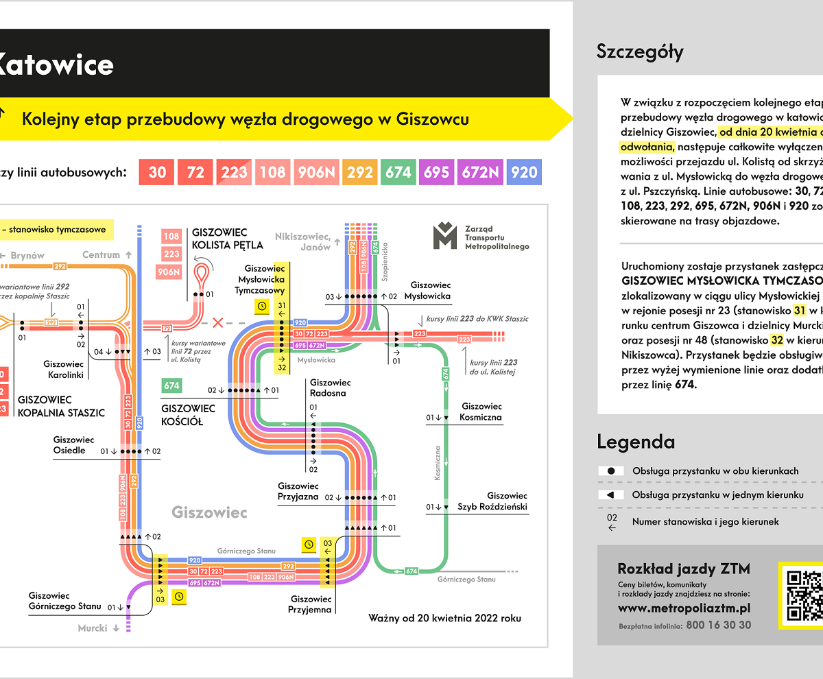 Oznacza to zmiany w organizacji ruchu i konieczność wprowadzenia przez Zarząd Transportu Metropolitalnego nowych tras przejazdów i rozkładów jazdy dla kilku linii autobusowych.