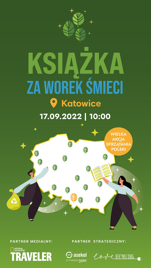 Już 17 września w Katowicach odbędzie się kolejna edycja ogólnopolskiej akcji społecznej "Książka za worek śmieci". Na uczestników wydarzenia w Katowicach czeka 50 książek, a w całej Polsce - aż 1000. Akcji w naszym mieście towarzyszyć będzie zbiórka elektrośmieci.