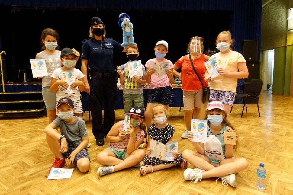 Policjantka za pomocą prezentacji multimedialnej z „Radami Sznupka” wskazała uczestnikom jakie w czasie wakacji czyhają na nich zagrożenia oraz jak ich uniknąć spędzając czas wolny w domu, nad wodą oraz w górach. Uczestnicy teraz wiedzą, że wybierając wypoczynek nad wodą należy wybrać plażę strzeżoną przez ratownika i kąpać się pod nadzorem rodzica, stosować się do zaleceń ratownika, regulaminu i oznaczeń kąpieliska. Natomiast wybierając się na wycieczkę w góry ważne jest m.in. by odpowiednio spakować plecak, zabrać ze sobą ciepłe ubranie, jedzenie i napoje. Założyć odpowiednie buty oraz sprawdzić prognozę pogody. Za pomocą komiksów policjantka omówiła z milusińskimi, jak należy bezpiecznie zachować się w kontakcie z osobą nieznajomą, która np.: dzwoni do domu, proponuje spotkanie przez internet lub zaprasza do samochodu, aby podwieźć do domu.