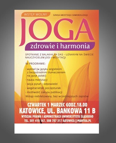 Organizowany wykład nosi tytuł: "Joga – zdrowie, harmonia”. Jego celem jest przybliżenie korzyści płynących z medytacji oraz samych praktyk.