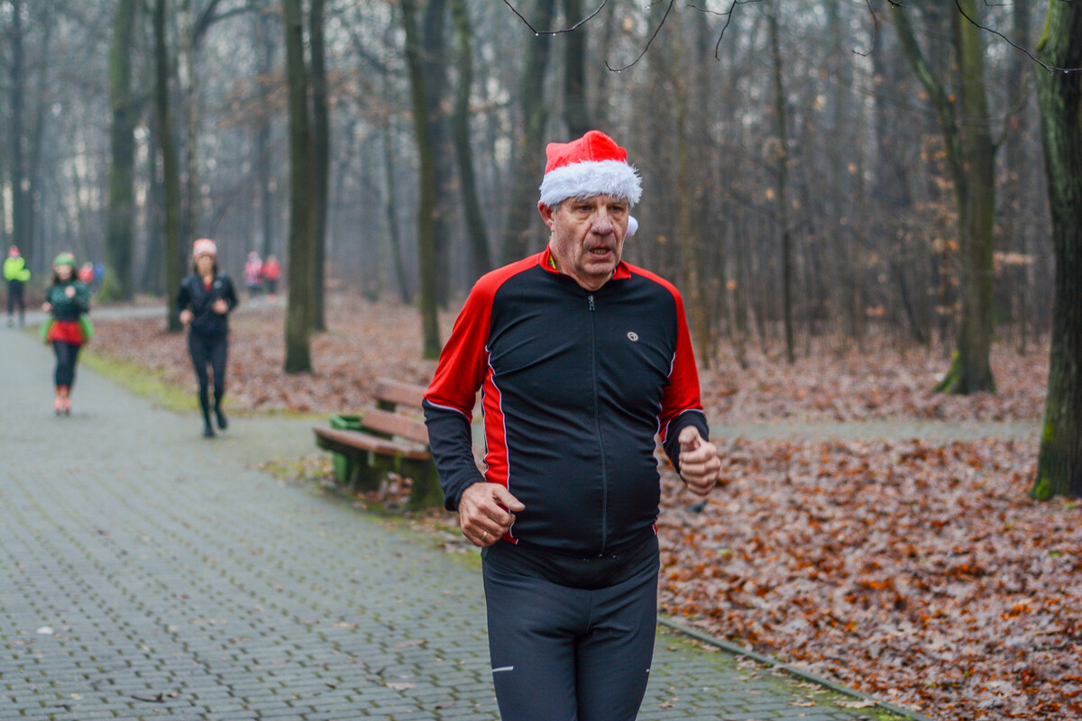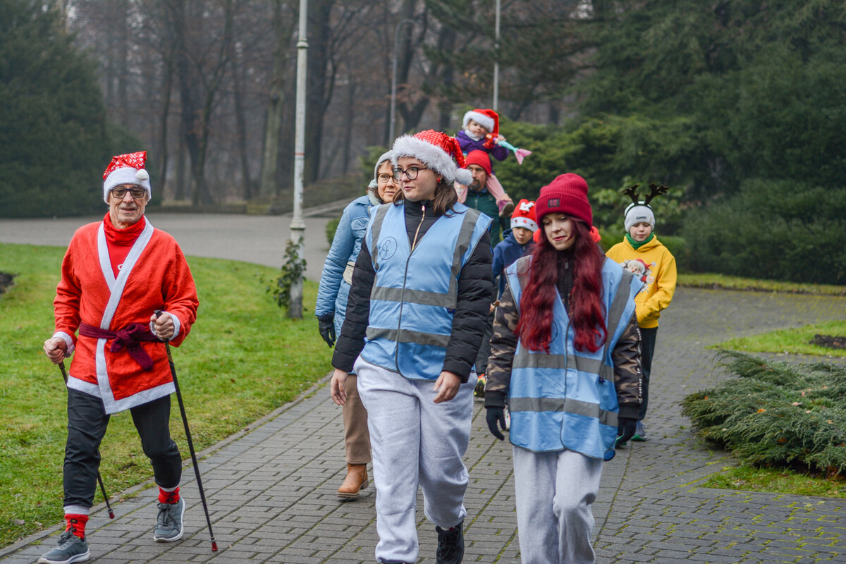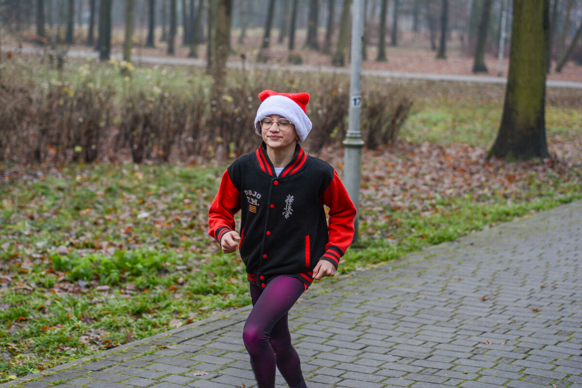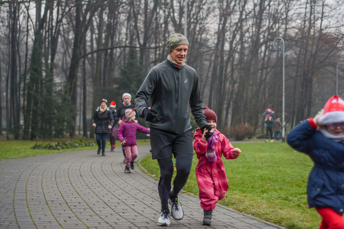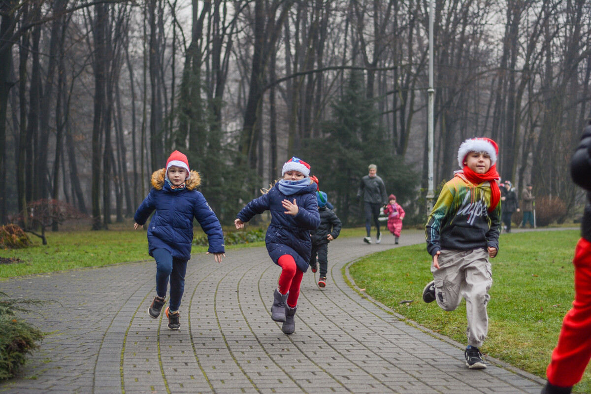 Dziś już z daleka było widać, że mikołajkowa edycja przyciągnęła sporo uczestników. Na starcie stanęli najpierw najmłodsi uczestnicy, w specjalnym okrążeniu przygotowane właśnie dla nich. Kilka minut po 9:00 ruszył bieg i marsz na standardowym dystansie - 5 kilometrów. Kolorowy tłum biegaczy, chodziarzy, spacerowiczów i kijkarzy startujących w kategorii nordic walking, wyruszył na parkowe alejki.