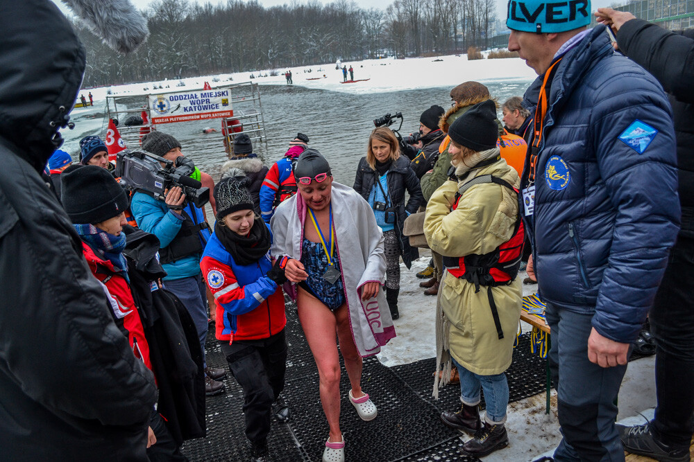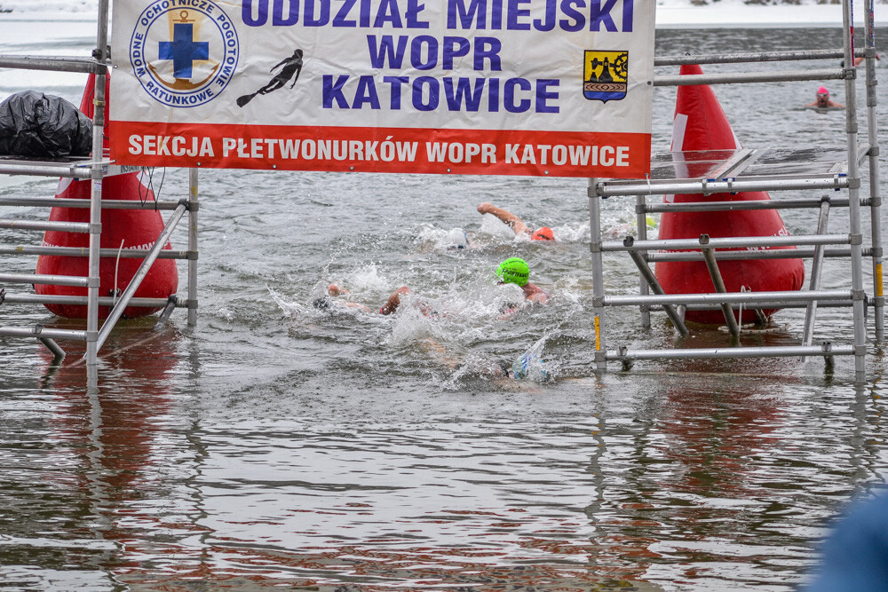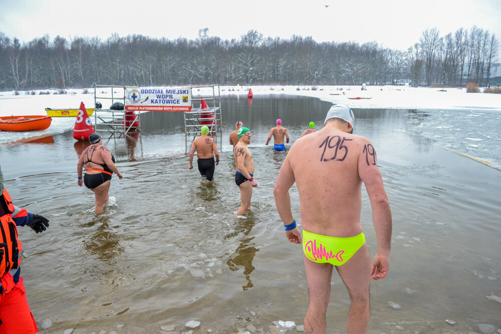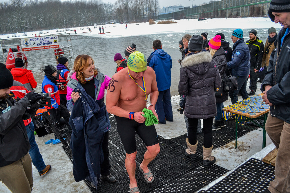 Na starcie - przy stawie Szlamiok na Trzech Stawach, pojawili się zawodnicy z Polski, Czech Słowacji, a nawet... Hongkongu i Argentyny. Zjechali się do Katowic, aby spróbować sił w lodowatej wodzie i pokonać wyznaczoną trasę.
