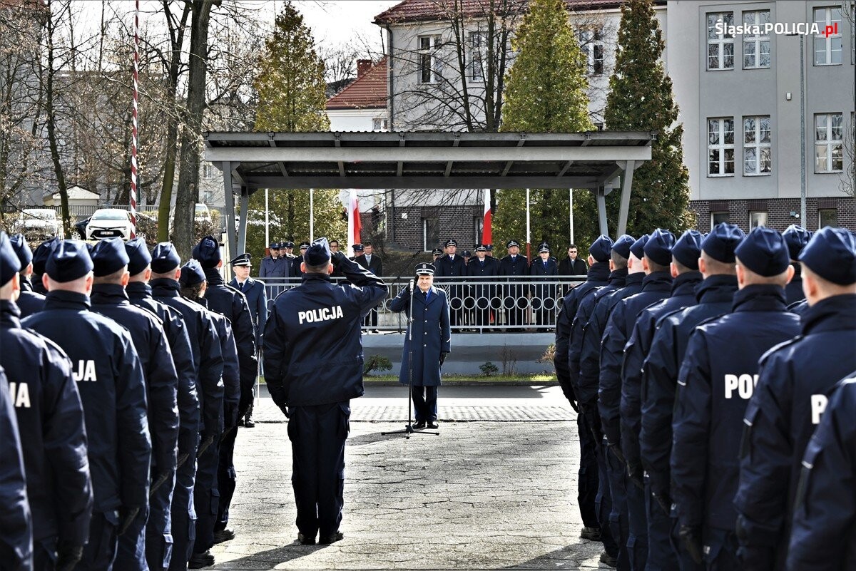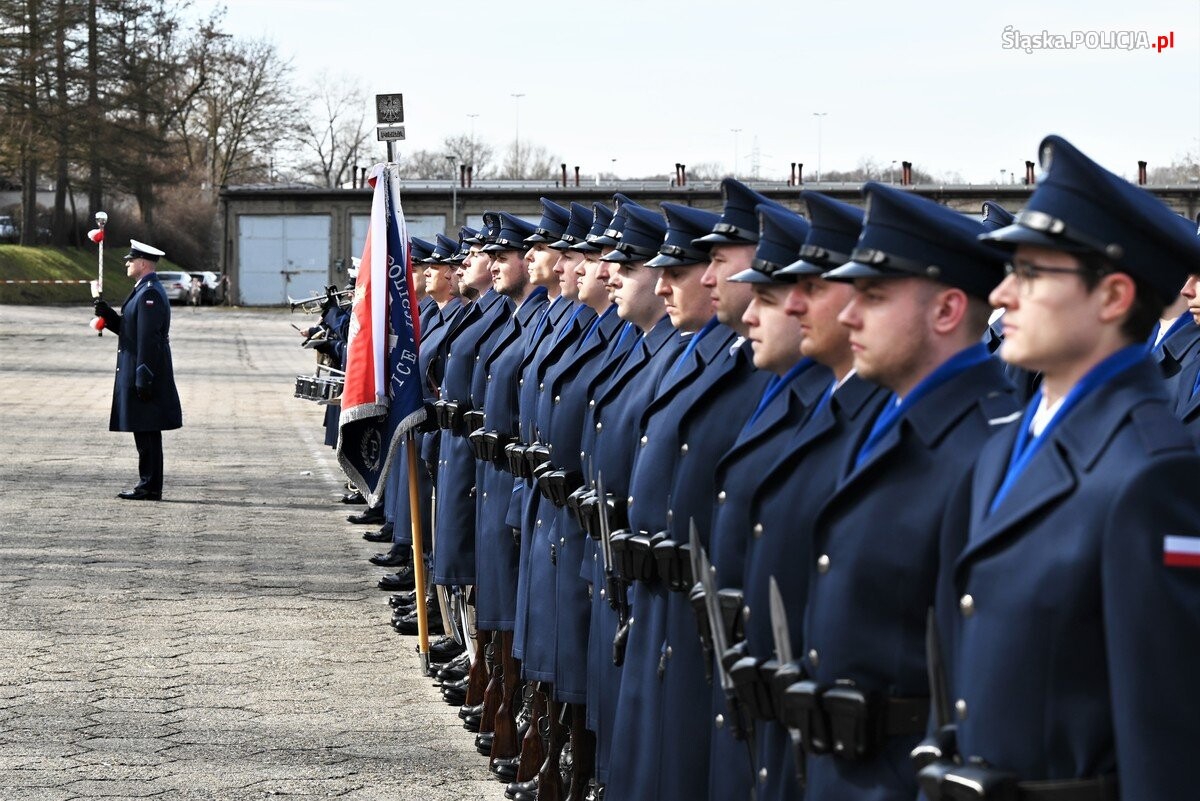 Uroczystość odbyła się na placu apelowym Oddziału Prewencji Policji w Katowicach z udziałem kompanii honorowej i policyjnej orkiestry. Rotę ślubowania od nowych policjantów przyjął Zastępca Komendanta Wojewódzkiego Policji w Katowicach inspektor Artur Bednarek.
