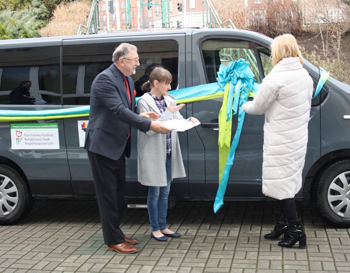 W dniu 5 lutego 2020 roku o godzinie 10.30 w Ośrodku Pobytu Dziennego dla Osób Niepełnosprawnych „Otwarte Drzwi" przy ul. Oswobodzenia 47, prowadzonym przez Stowarzyszenie Na Rzecz Osób Niepełnosprawnych „Siódemka" w Katowicach, odbyło się uroczyste przekazanie samochodu dofinansowanego ze środków PFRON w ramach Programu Wyrównywania Różnic Między regionami III oraz środków budżetu Miasta, przyznanych w ramach konkursu na wkład własny.