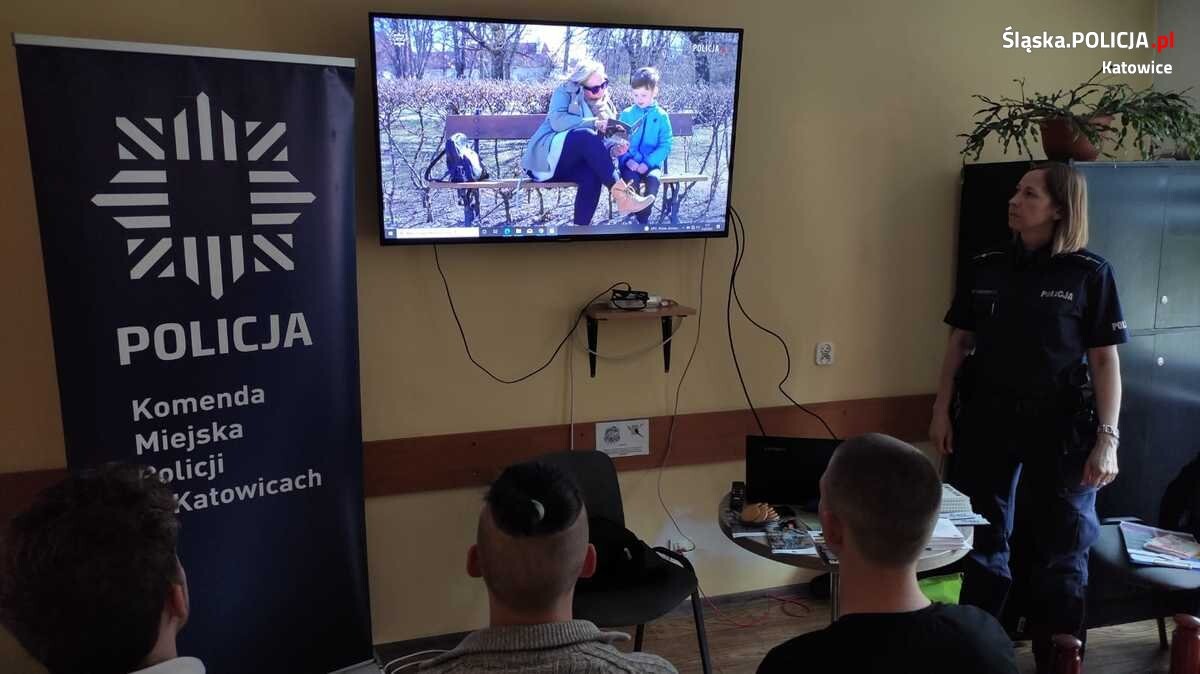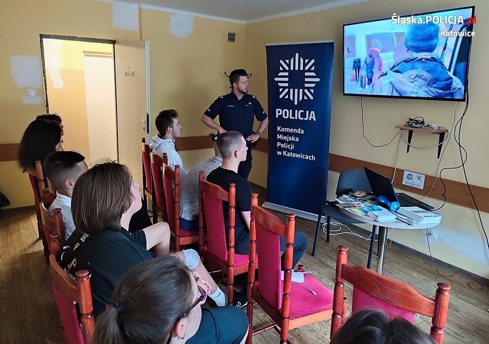 W Katowickim Centrum Edukacji Zawodowe młodzi obywatele z Ukrainy znaleźli schronienie, opiekę oraz możliwość kontynuacji edukacji szkolnej. Od wielu tygodni katowiccy policjanci spotykają się z ukraińskimi dziećmi, młodzieżą i ich rodzicami, rozmawiając o bezpieczeństwie, zagrożeniach, a także obowiązujących w Polsce przepisach. Tym razem na spotkaniu młodzież dowiedziała się, czym jest handel ludźmi, omówiono metody działania sprawców oraz szereg zachowań, pozwalających uniknąć stania się ofiarą tego przestępstwa. Za pośrednictwem prezentacji multimedialnej oraz spotów profilaktycznych, przygotowanych przez KGP, omówiono z uczestnikami sytuacje bezpiecznego poruszania się ulicami oraz podróżowania po naszym kraju. Poinformowano, jak chronić osobiste rzeczy i dokumenty, gdzie należy szukać bezpiecznej pracy, a także do kogo zwrócić się o pomoc w sytuacji zagrażającej życiu lub zdrowiu. Młodzież została wyposażona w ulotki w języku polskim i ukraińskim, zawierające omówione ostrzeżenia oraz notesy z hasłem Twój wybór-Twoje bezpieczeństwo.