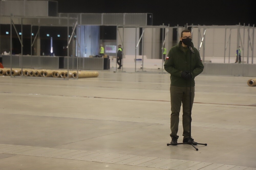 Premier podkreślił, że skalę tego rządowego przedsięwzięcia obrazuje Międzynarodowe Centrum Kongresowe w Katowicach. To kolejna po Szpitalu Narodowym w Warszawie placówka medyczna tworzona w ramach walki z koronawirusem. W pierwszym etapie wykonywana jest instalacja tlenowa i wentylacyjna. Hala Międzynarodowego Centrum Kongresowego zostanie podzielona na dwie części z wydzielonymi stanowiskami do intensywnej terapii. Planowane jest uruchomienie 500 miejsc dla pacjentów, w tym 100 to łóżka z respiratorami. Szpitalem patronackim powstającej placówki jest SP ZOZ MSWiA im. sierżanta Grzegorza Załogi w Katowicach.