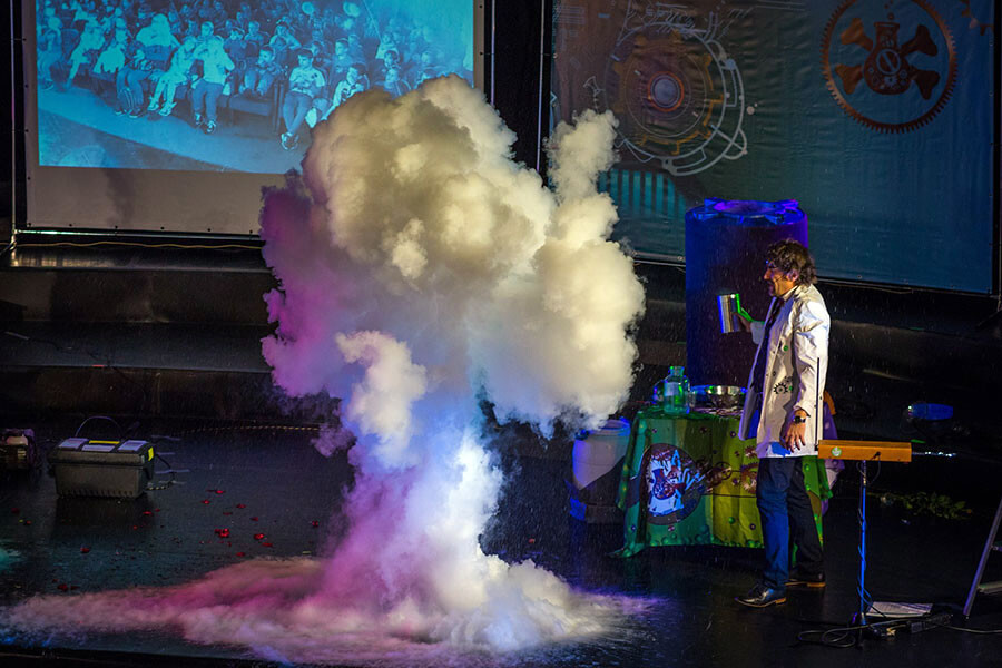 - Ciekły azot: Szereg eksperymentów wykazujących właściwości ciekłego azotu i innych gazów. Zmniejszenie i zwiększenie objętości, szybkie zamrażanie znajomych przedmiotów oraz substancji. Mgła na stole i ogromny wybuch azotowy to tylko niektóre z atrakcji!
