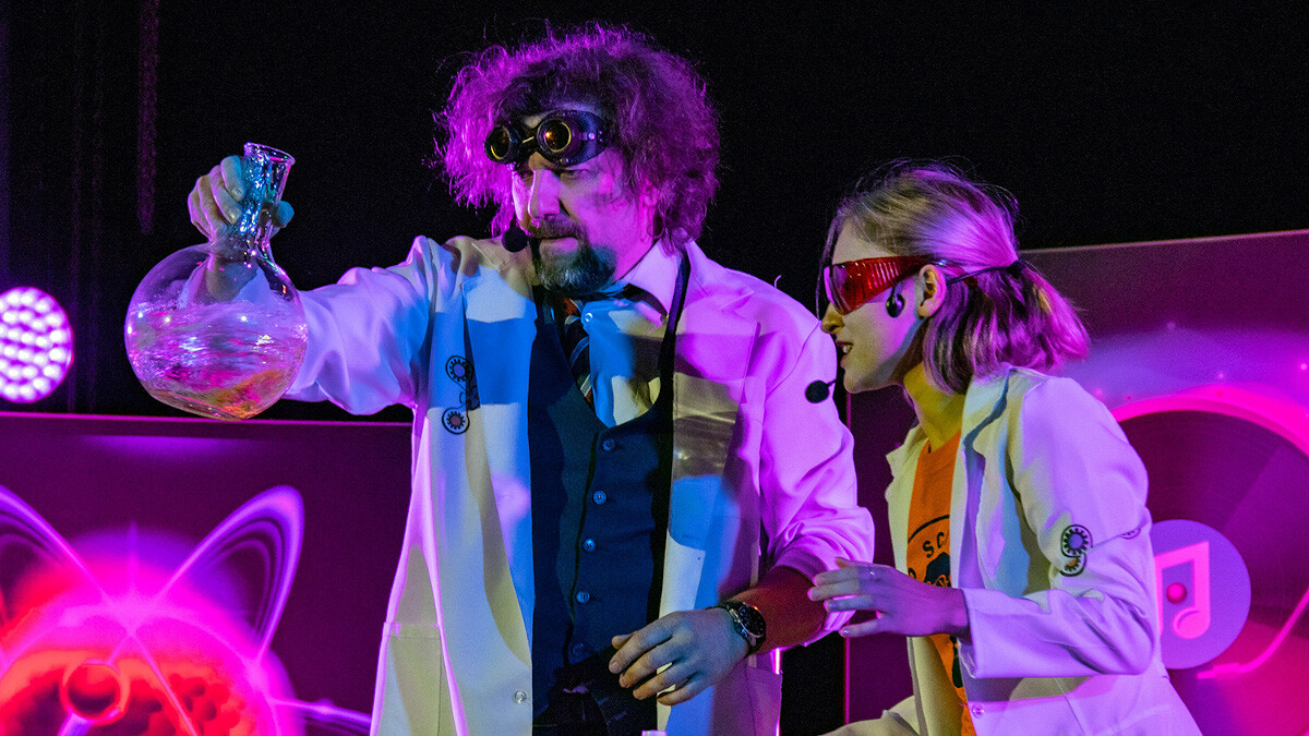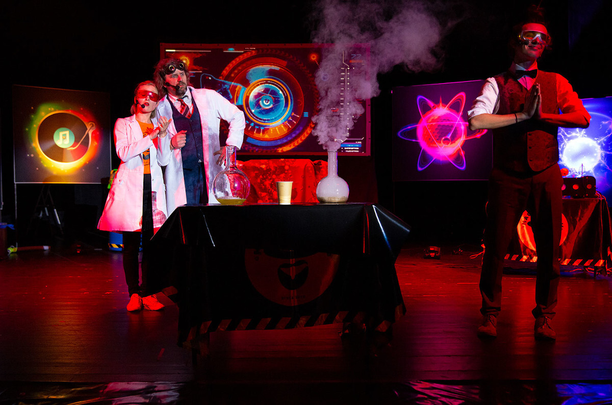 Podróż do fascynującego świata kolorowych probówek, buchającej piany, pośród menzurek czy magnesów odkryje nowe pasje i będzie fantastyczną, zapamiętaną na długie lata przygodą. To doskonała alternatywa dla tradycyjnych metod edukacyjnych i pełne humoru widowisko, które nie tylko zachwyci kreatywnym wykonaniem, ale z pewnością rozbudzi wyobraźnię każdego młodego naukowca! Ponieważ spektakl ma charakter rozrywkowy, to – choć tłumaczymy widzom zasady realizacji każdego z eksperymentów – nie zagłębiamy się w szczegółowe wyjaśnienia fizyki i chemii.