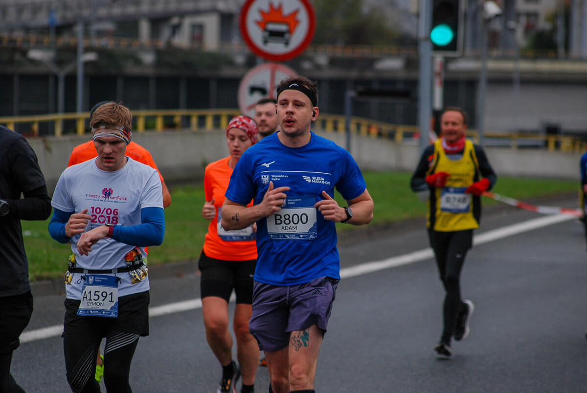 Równo o godzinie 8:00 ruszyła pierwsza grupa maratończyków, gotowych by zmierzyć się z królewskim dystansem. Pogoda dopisuje, trasa licząca ponad 42km jest odpowiednio przygotowana i obstawiona, a na ulicach względny spokój (przynajmniej w Katowicach bez dużych utrudnień, policja i służby porządkowe dbają o porządek). Pięć minut po pierwszej fali ruszyła druga, bardzo liczna grupa biegaczy.