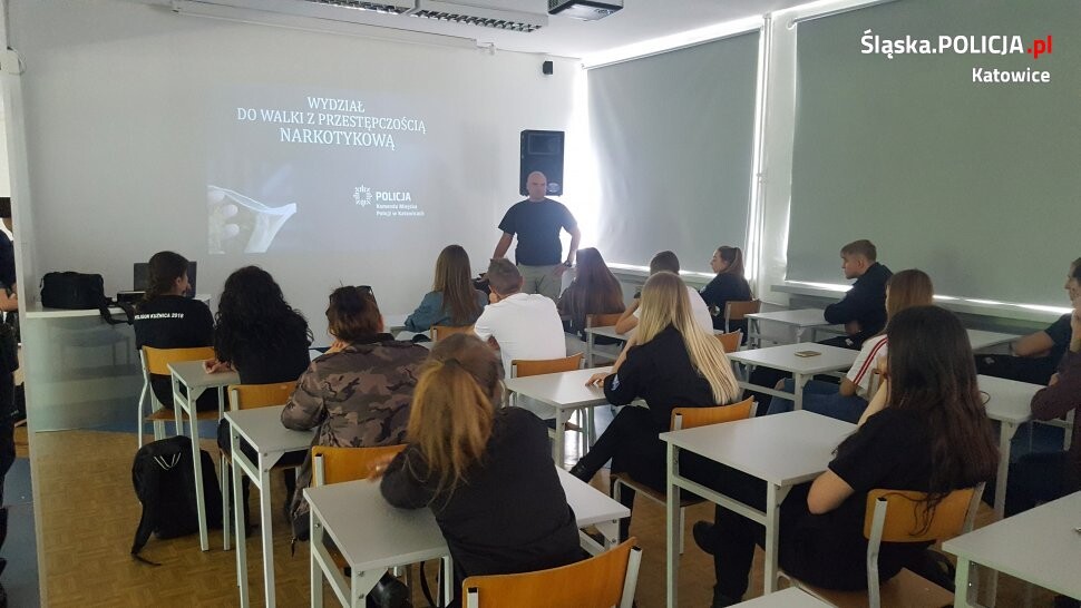 W ostatnim czasie policjanci z Wydziału dw. z Przestępczością Narkotykową oraz Wydziału dw. z Przestępczością Samochodową KMP w Katowicach wraz z oficerem prasowym Komendy Miejskiej Policji w Katowicach odwiedzili XIV oraz XV liceum ogólnokształcące. Rozmawiali z uczniami o swojej codziennej służbie i odpowiadali na szereg pytań z zakresu swoich specjalizacji. Przygotowanie do służby, sposób jej pełnienia, podstawy prawne działań, te i inne zagadnienia zostały przybliżone młodzieży. Nie obyło się również bez profilaktyki uzależnień, którą przypomniano młodzieży o tragicznych skutkach zażywania środków odurzających.