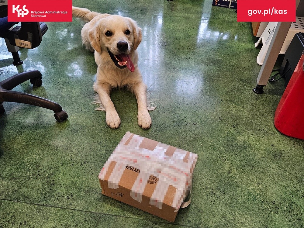 Funkcjonariusze ze Śląskiego Urzędu Celno-Skarbowego w Katowicach skontrolowali przesyłki pocztowe w Centrum WER Zabrze. Podczas kontroli niezawodny okazał się nos biszkoptowego goldena retrievera Kodi.