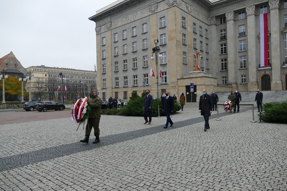 Wojewoda śląski Jarosław Wieczorek, marszałek województwa śląskiego Jakub Chełstowski, prezydent Katowic Marcin Krupa i przewodniczący Górnośląsko-Zagłębiowskiej Metropolii Kazimierz Karolczak złożyli kwiaty pod pomnikami Powstańców Śląskich oraz Wojciecha Korfantego. Pod pomnikiem Józefa Piłsudskiego wojewoda złożył wieniec w imieniu Prezesa Rady Ministrów Mateusza Morawieckiego.