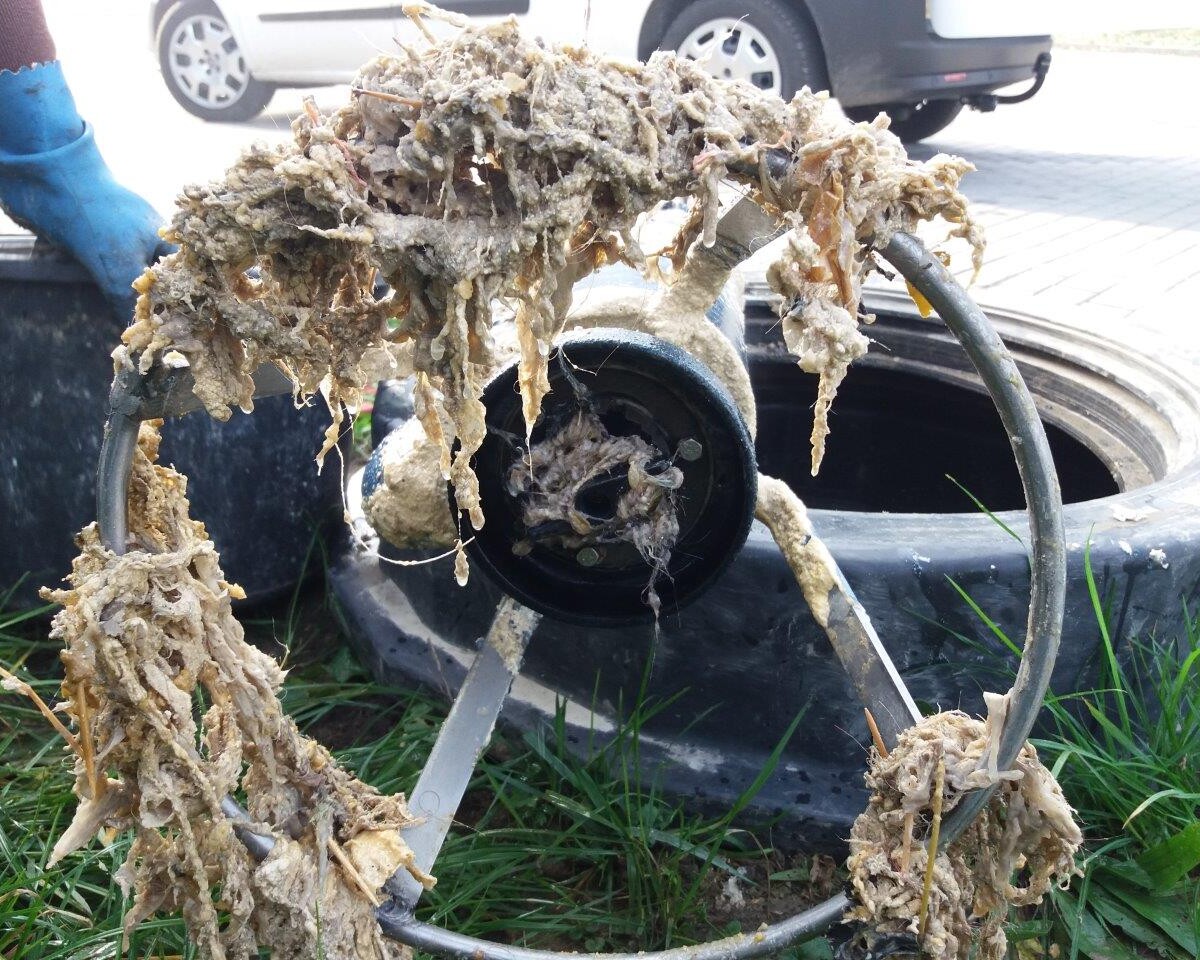 - Środki higieny – chusteczki nawilżane, podpaski, pieluchy, tampony. Łączą się w mocne sploty i tworzą zatory.