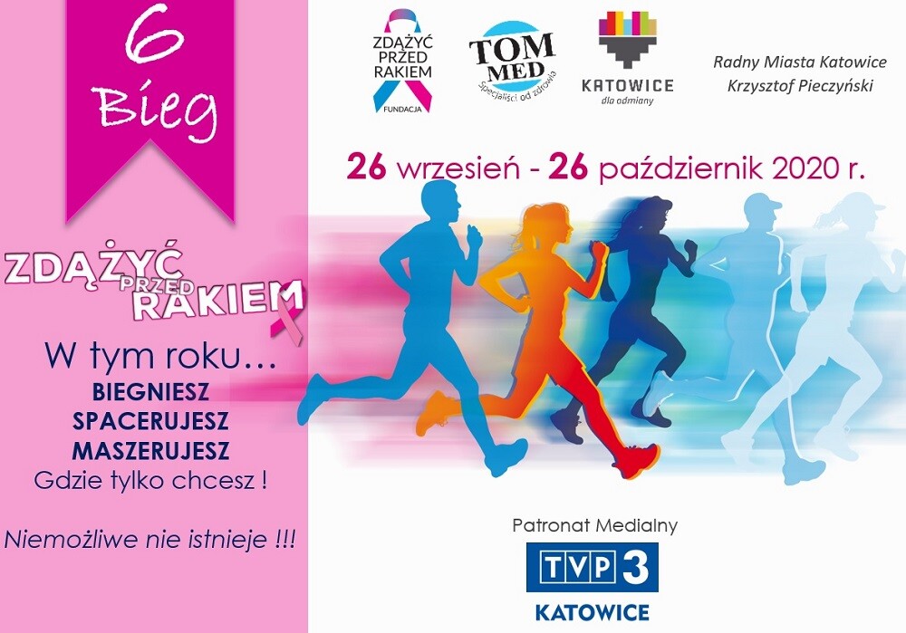 W związku z dynamicznie rozwijająca się sytuacją związaną z pandemią koronawirusa w Polsce, Fundacja "Zdążyć Przed Rakiem" w tym roku podjęła decyzję o zmianie formuły biegu z formy stacjonarnej w Parku Zadole w Katowicach, na bieg wirtualny z wydłużonym czasem, w którym biegacze mogą pokonywać dystans w swoim tempie i w dowolnie wybranym miejscu na Świecie.