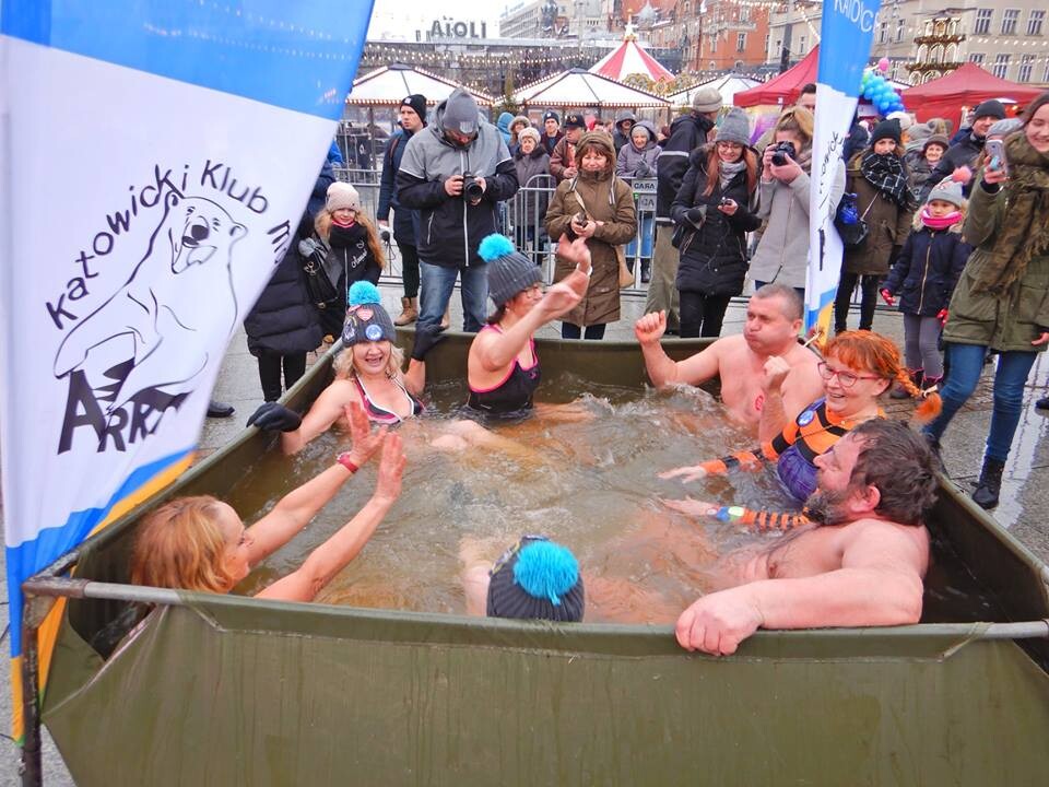 Nie tylko w Świętochłowicach pojawiły się dziś "morsy", bo i w centrum Katowic zażywano lodowatych kąpieli. I to wszystko w szczytnym celu!
