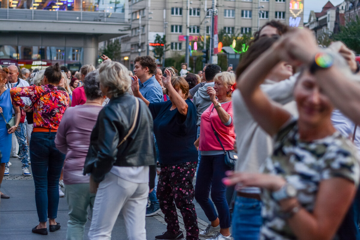 Mimo pochmurnego nieba i popołudniowych opadów deszczu, potańcówka pod Teatrem Śląskim przyciągnęła tłum chętnych. Pełny sukces, a my mamy to na zdjęciach!