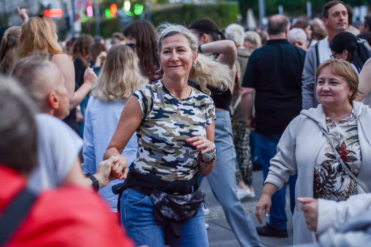 Kilkaset osób, sporo w strefie tańca i drugie tyle dookoła niej - pojawiło się na pierwszej w te wakacje imprezie tanecznej pod Teatrem Śląskim. W lipcowy wieczór kołysano się i wirowano do letnich, lubianych hitów. Działo się przez cały czas, a z głośników wybrzmiały ponadczasowe przeboje. Co ciekawe, to właśnie uczestnicy mieli możliwość współtworzyć - głosując - setlistę utworów, jakie zagra dj.