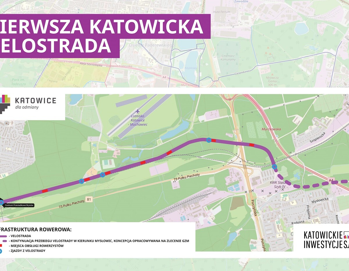 Symbolicznym „wbiciem łopaty" prezydent Marcin Krupa rozpoczął realizację pierwszej velostrady w Katowicach. Będzie to tak zwana autostrada rowerowa umożliwiająca wygodniejsze i szybsze przemieszczanie się rowerzystów, łącząca Brynów z Giszowcem. Roboty budowlane potrwają 9 miesięcy, a kolejne 3 przeznaczone są na odbiory inwestycji.