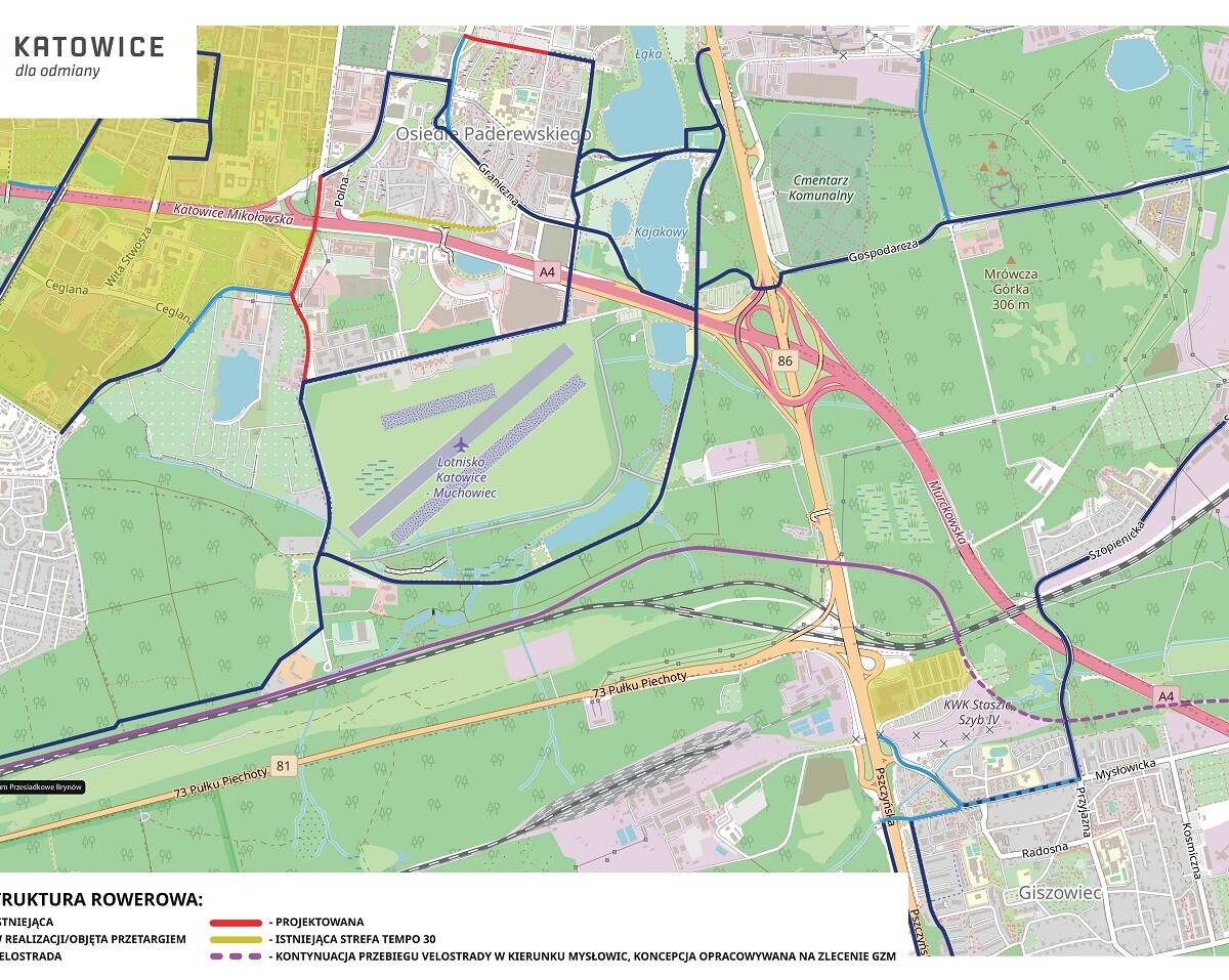 Obecnie trwają trzy przetargi na inwestycje związane z rozwiązaniami dla rowerzystów. Pierwszy z nich dotyczy budowy odcinka, który połączy ulice Kościuszki i Barbary, wzdłuż autostrady A4. Wykonawca wybrany w ramach drugiego przetargu będzie odpowiadał za stworzenie odcinka drogi dla pieszych i rowerów na ul. Meteorologów, od ul. Porfirowej do ul. Bazaltowej. Natomiast w ramach trzeciego przetargu miasto wybierze wykonawcę analogicznego rozwiązania na odcinku od ul. Bazaltowej do ul. Francuskiej.